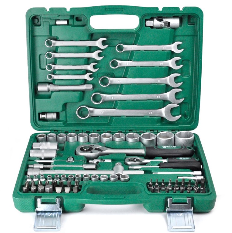 Универсальный автомобильный набор 82 предметов для ремонта выполнен из специальной закаленной стали с повышенным содержанием углерода.