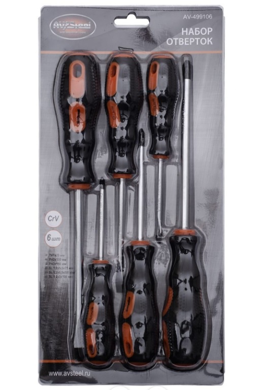 Набор отверток магнитных PH/SL, 6 предметов AV-499106 - комплект инструмента для работы с крепежом.