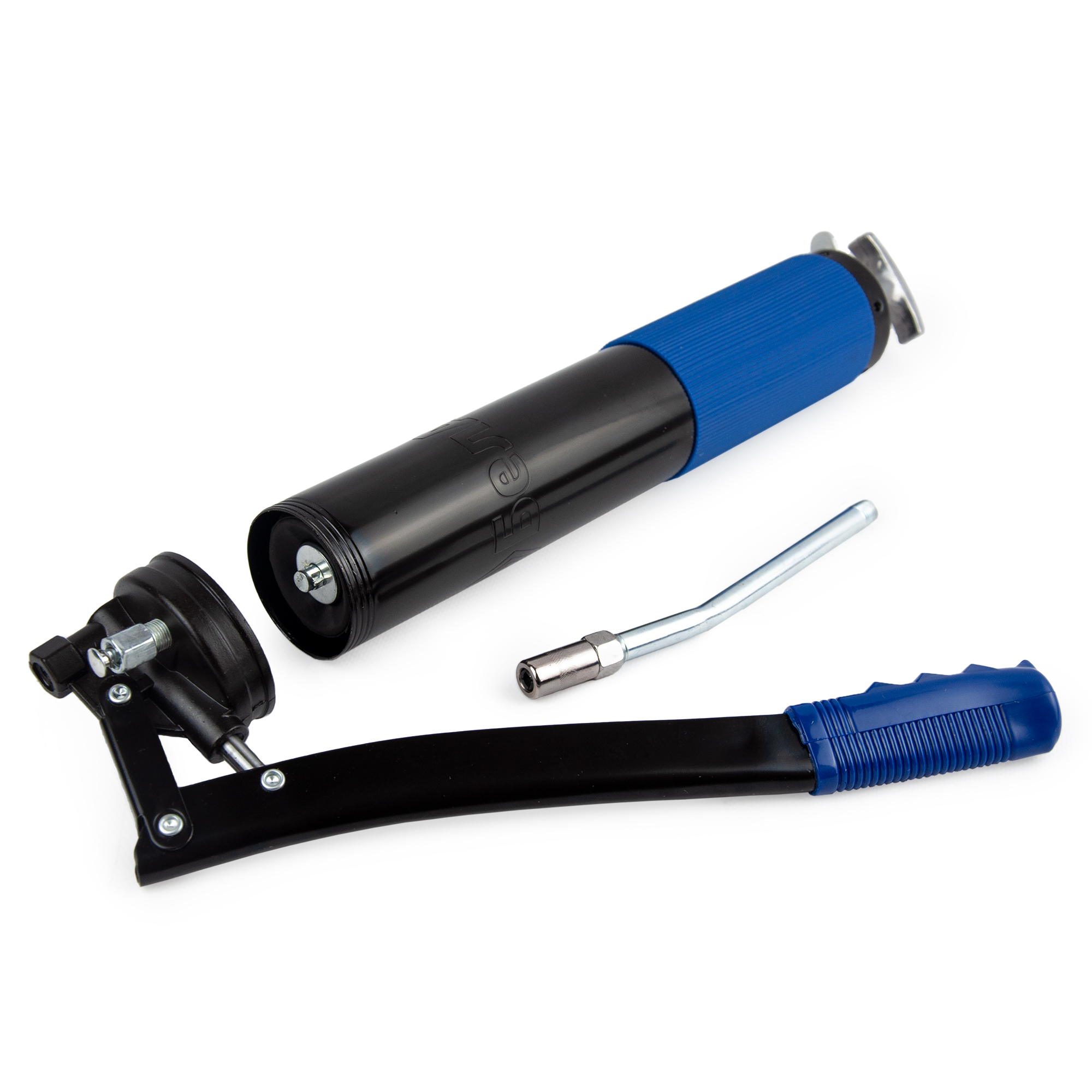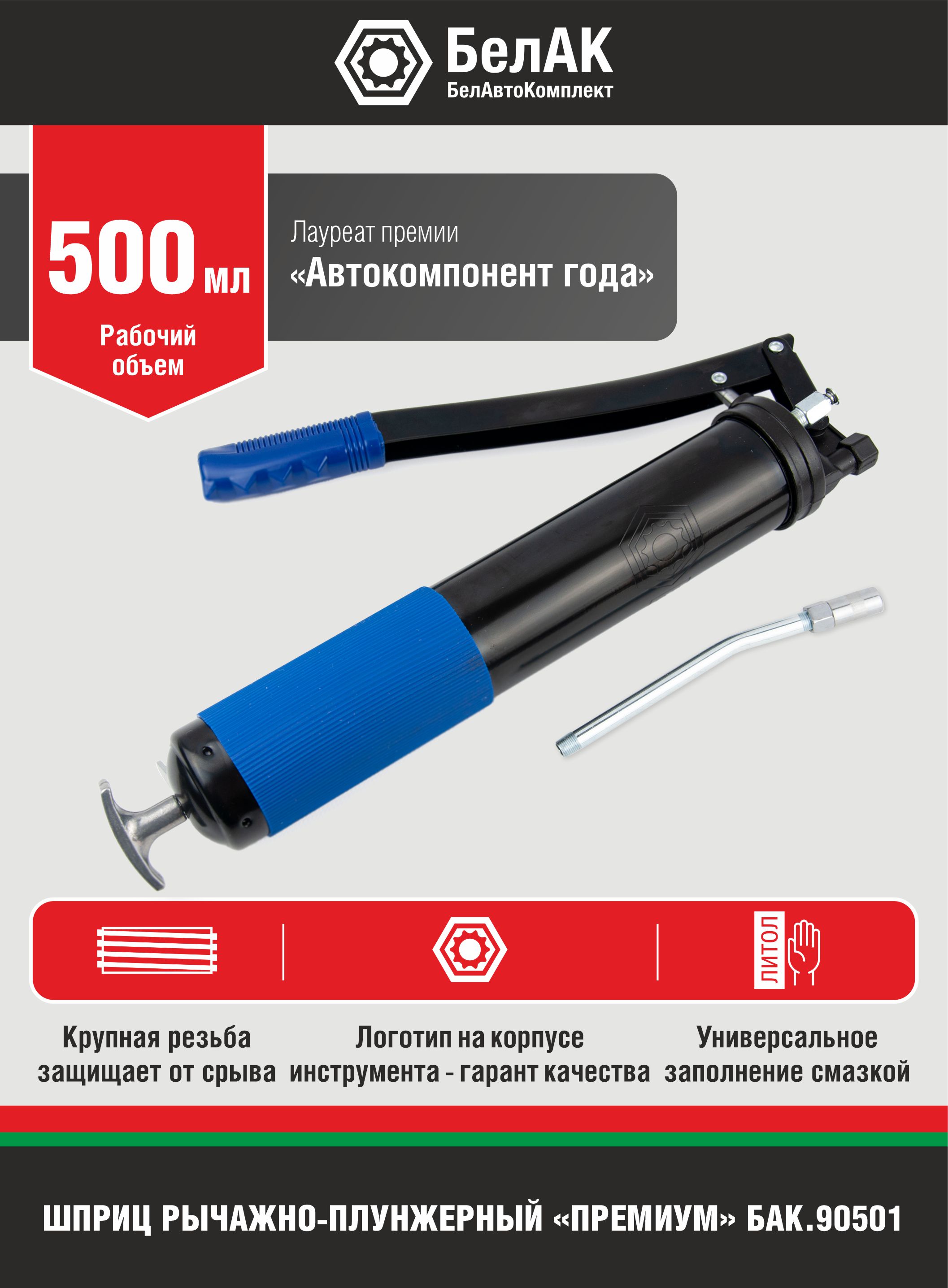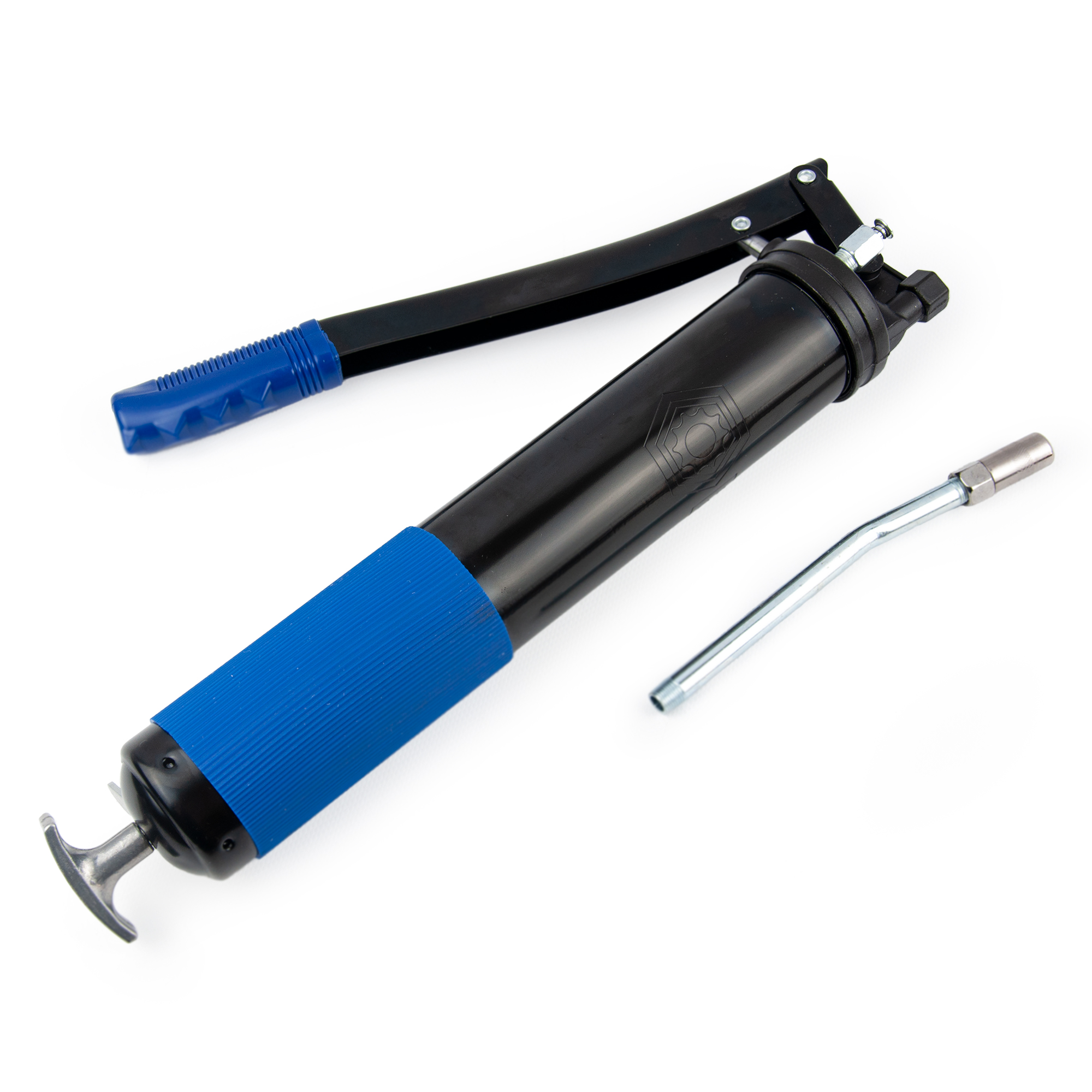 Шприц для смазки Премиум группы с жестким наконечником. Подходит для густой смазки различной вязкости. Корпус — стальной, оснащен резиновой накладкой. Это облегчает использование и предотвращает скольжение — конструкция не выпадет из рук и не повредится.