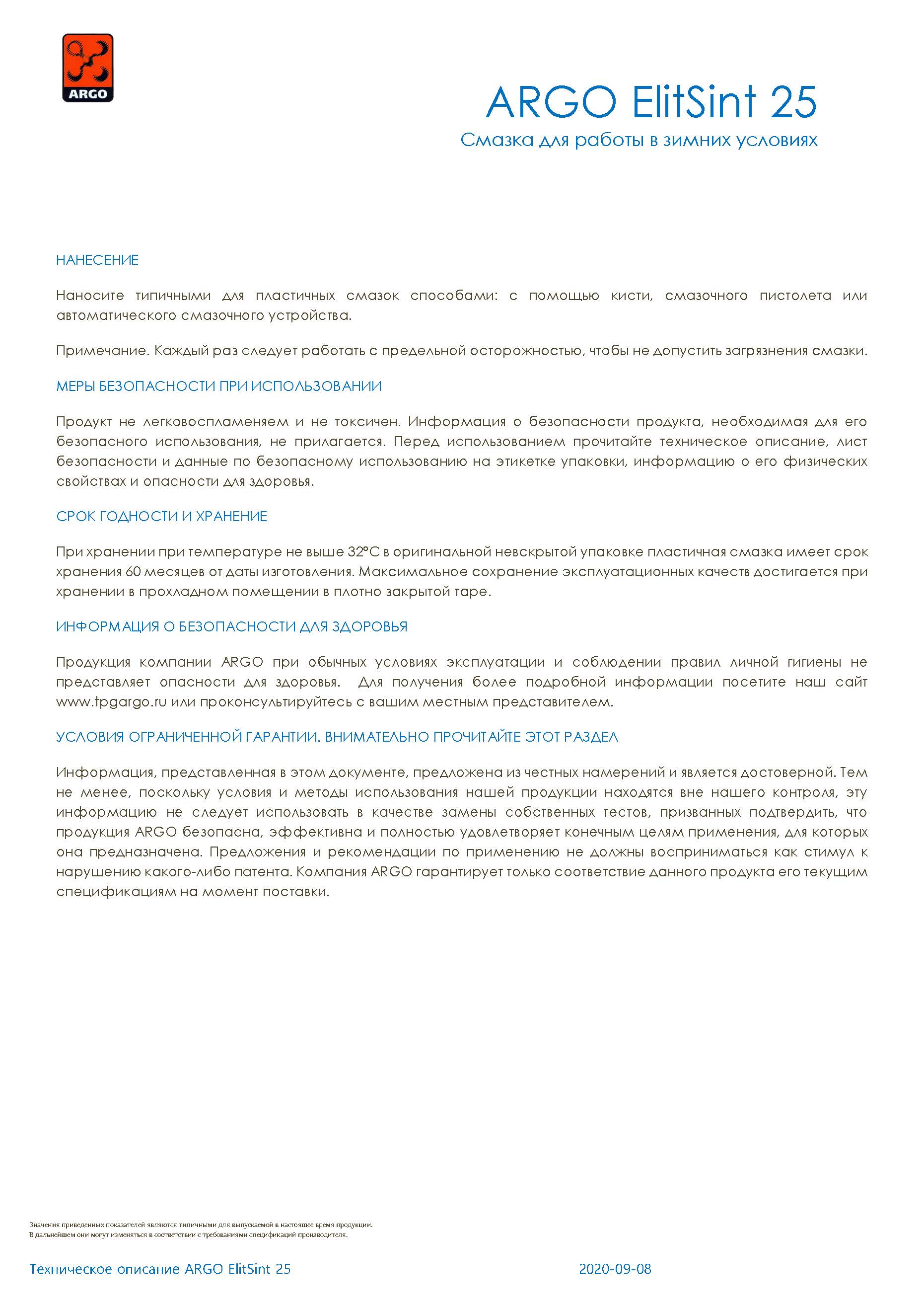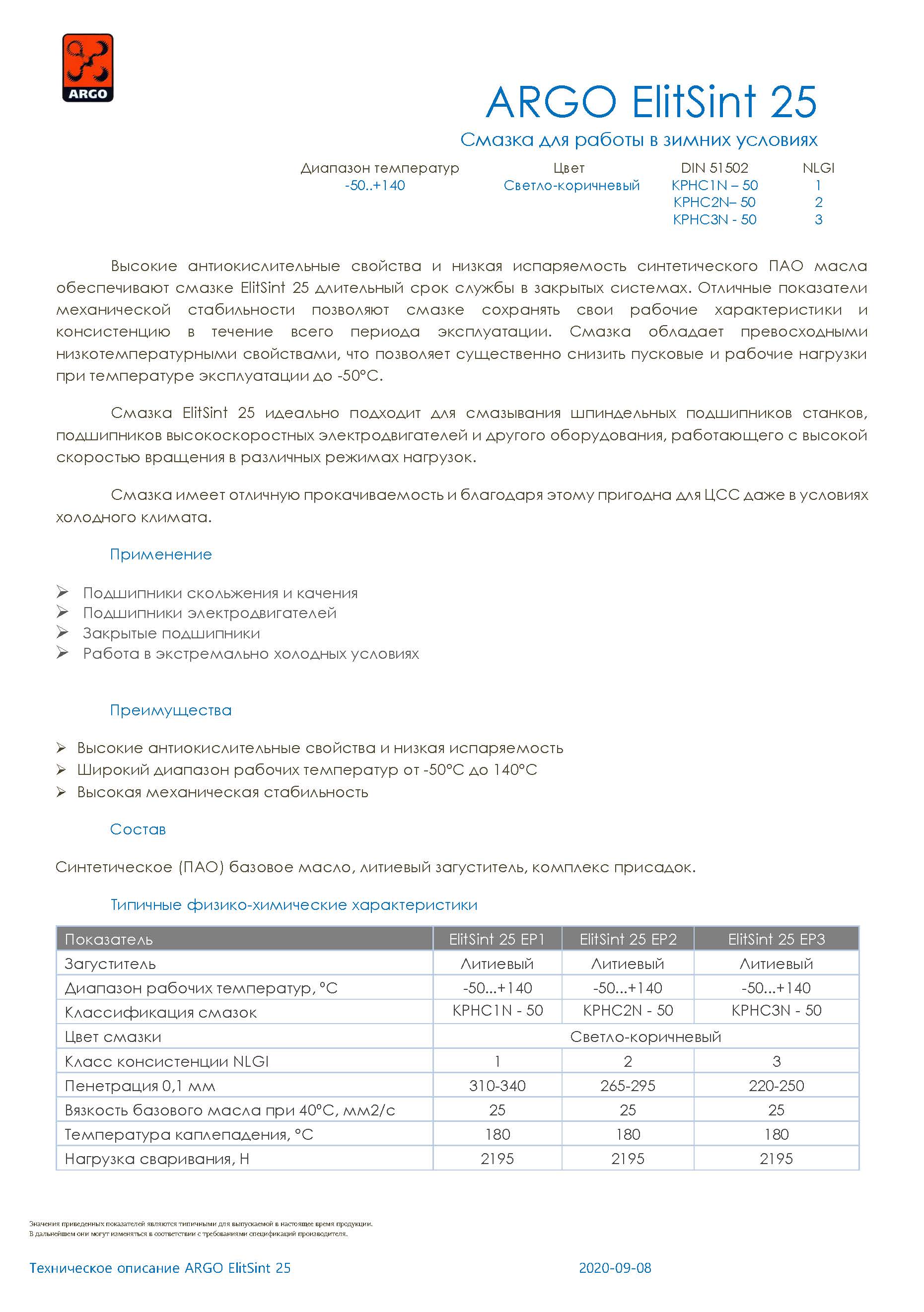 Техническое описание ARGO ElitSint 25 2020-09-08